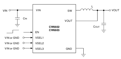 CW6603的功能和尺寸与CW6602一致,区别是输出电压范围为0.6V~1.2V。